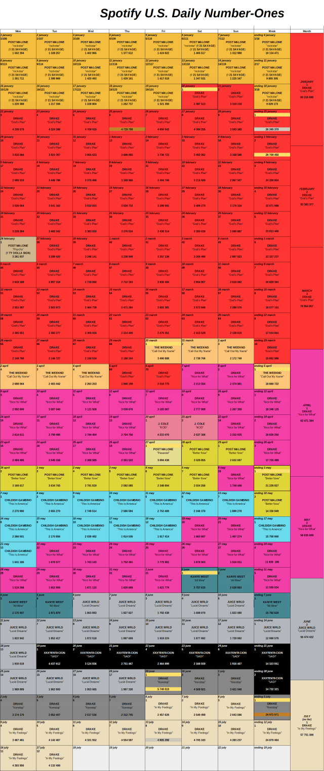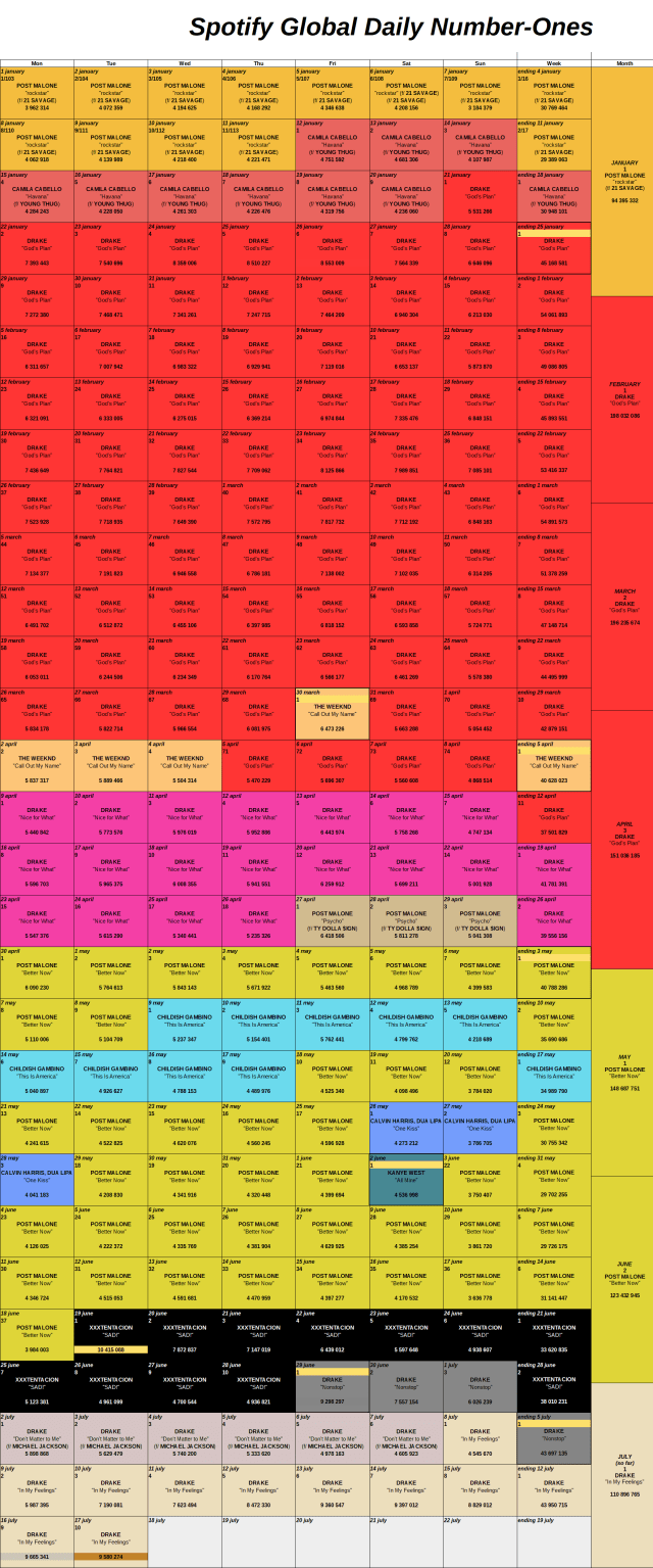 Introducing a New Way to Analyze Global Spotify #1 Hits: A Calendar Chart